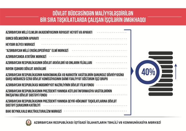 -dövlət büdcəsindən maliyyələşən bir sıra digər təşkilatlarda çalışan şəxslərin aylıq vəzifə maaşlarının orta hesabla 40 faiz artırılmasını nəzərdə tutur.
