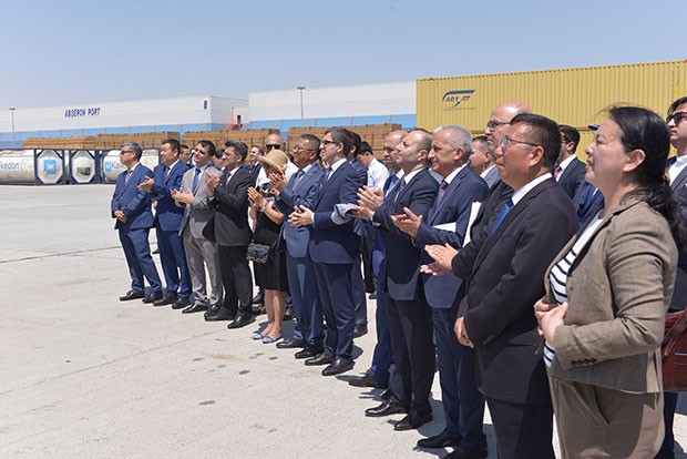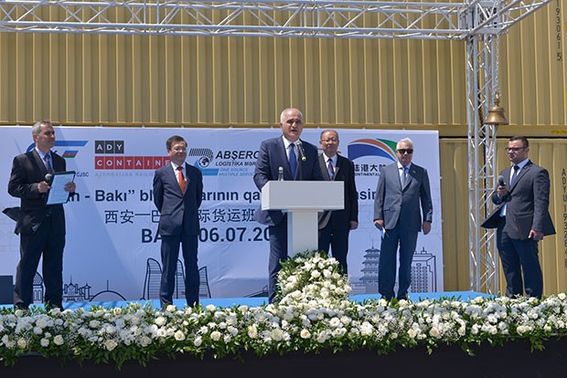 Mərasimdə İqtisadiyyat naziri Şahin Mustafayev, “Azərbaycan Dəmir Yolları” QSC-nin sədri Cavid Qurbanov, Sian şəhəri Xalq hökumətinin vitse-meri Qao Qao, Şansi vilayətinin Kommersiya Departamentinin direktor müavini Tan Yuntanq iştirak ediblər.