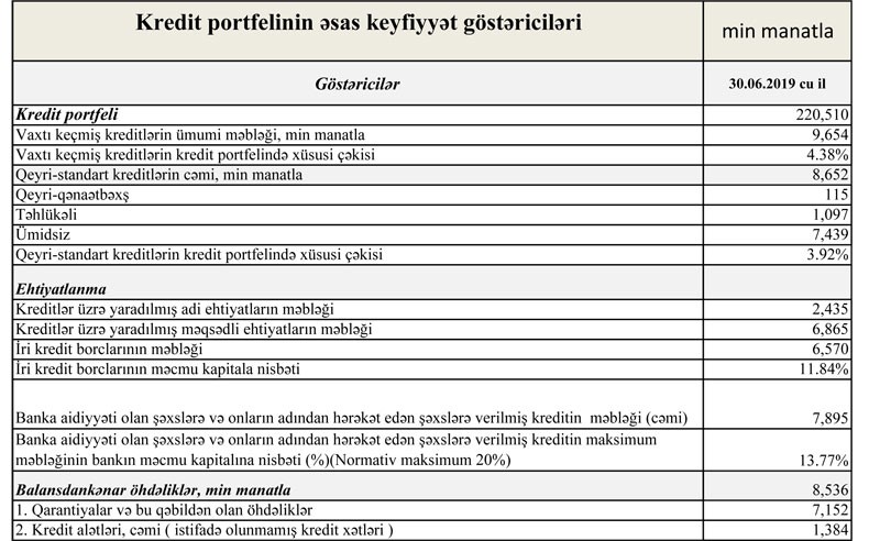 Ötən ilin sonunda 283 milyon 376 min manat təşkil etmiş cəmi aktivlər iyunun sonunda 293 milyon 711 min manata yüksəlib.