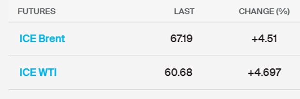 ABŞ-da xam neft ehtiyatlarının gözlənildiyindən çox azalması ilə əlaqədar olaraq neft qiymətləri 5%-ə yaxın yüksəlib. Brent nefti 4,5% bahalaşaraq barelinin qiyməti 67,19 dolları, ABŞ xam nefti isə 4,7% bahalaşaraq 60,68 dolları görüb.