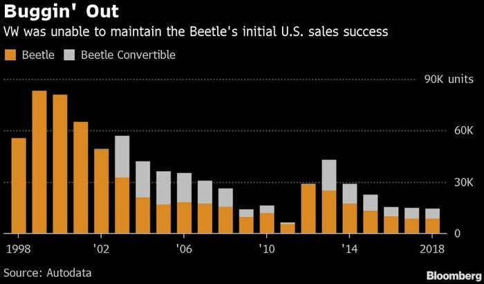 Beetle-a tələbat, uzun illərdir aşağı benzin qiymətlərinə görə amerikalı istehlakçıların SUV və Pikaplara yönəlməsilə azalıb.