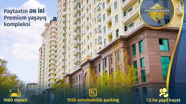 ® Paytaxtda inşa edilən premium sinif yaşayış kompleksləri arasında Yasamalda yerləşən “Renessans Palace” xüsusi ilə seçilir. Dörd korpus, 20 blok, 1084 mənzildən ibarətdir. 3 hektar ərazini əhatə edən kompleks özünə xas üstünlüklərlə, premium kateqoriya üçün tələbləri ödəməsi ilə şəhərin digər yaşayış komplekslərindən fərqlənir.