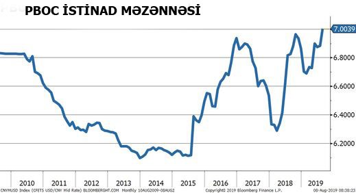 PBOC bu həftənin əvvəlindən gündəlik istinad məzənnəsini zəif səviyyələrdə müəyyən edir. Mərkəzi Bankın bu siyasəti yuanın ucuzlaşmasına səbəb olur. Eyni zamanda, qlobal məzənnə müharibəsi narahatlıqlarını da artırıb. Qlobal bazarlar, Bankın elan etdiyi istinad məzənnəsini yaxından izləyir.
