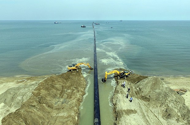 Sabunçu rayonunun Pirşağı qəsəbəsi yaxınlığında inşa edilən və məhsuldarlığı sutkada 40 min kubmetr olan Pirşağı tulantı sutəmizləyici qurğusunun dənizə çıxış xəttinin tikintisi layihənin ən vacib hissələrindən biridir. Xəzər dənizinin ekoloji sabitliyinin qorunması məqsədilə qurğuda təmizlənmiş suların dənizin nisbətən dərin hissəsinə axıdılmasını təmin etmək üçün 1600 mm diametrli polad borularla 1700 metr uzunluğunda daşıyıcı xətt inşa edilib. Xəttin quraşdırlıması Azərbaycan Respublikası Dövlət Neft Şirkətinin (SOCAR) sualtı boru kəmərlərinin tikintisi və metal konstruksiyaların korroziyadan mühafizəsi sahəsində ixtisaslaşmış “Neftqaztikinti” trestinin Hövsan qəsəbəsi yaxınlığında yerləşən tikinti meydançasında həyata keçirilib.
