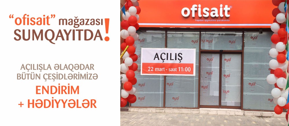 “OFİSAİT” mağazalarında kompüter və dəftərxana ləvazimatlarından tutmuş - təmizlik əşyalarına qədər geniş çeşid vardır. “Ofisait” məhsulların qiymətilərinin çox münasib olması ilə seçilir.