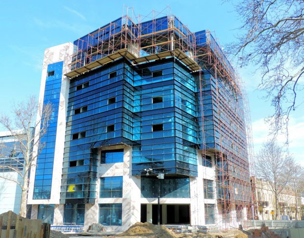 "Marja" xəbər verir ki, Gəncə şəhərində inşa olunan yeddimərtəbəli “Majestic Palace” otelinin fasadında sonuncu mərtəbənin metal-şüşə konstruksiyasının quraşdırılması tamamlanmaq üzrədir. Otelin bu il istifadəyə verilməsi nəzərdə tutulub.