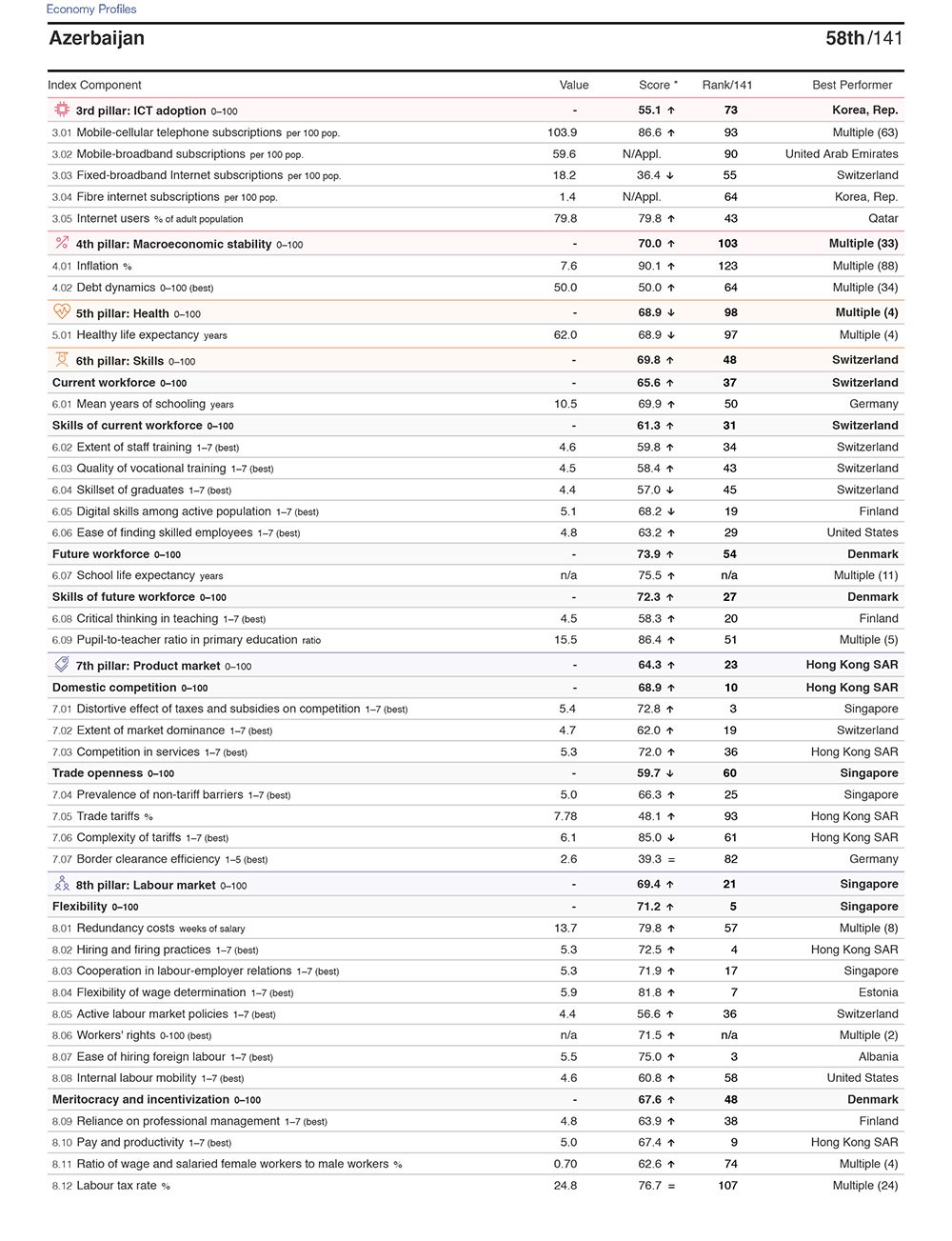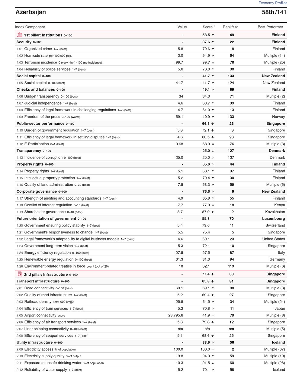 Azərbaycan hazrda 62,7 bal ilə (2,7 bənd əlavə edib) reytinq siyahısında 58-ci yeri tutur.