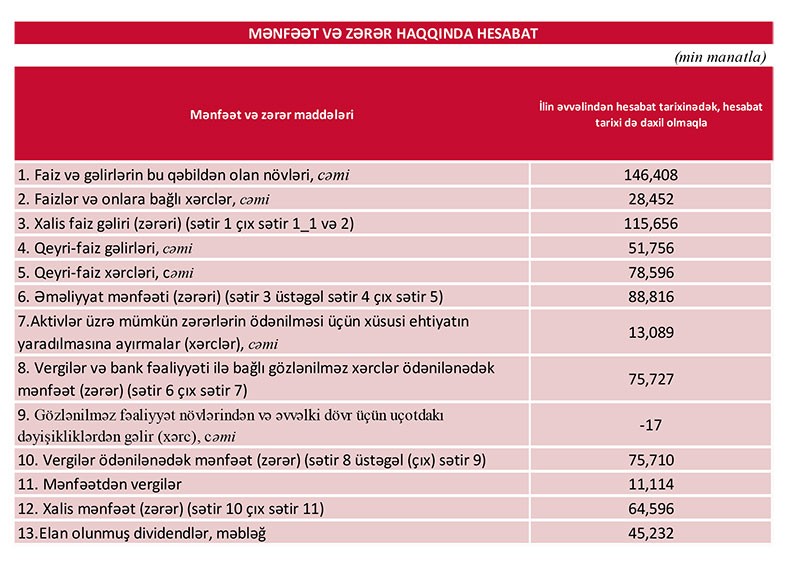 Azərbaycanın ən böyük özəl bankı 9 aylıq maliyyə göstəricilərini açıqladı