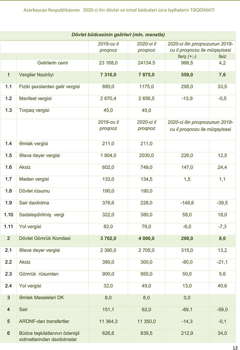 “Artıma səbəb minimum əməkhaqqının və dövlət büdcəsindən maliyyələşən təşkilatlarda çalışanların əməkhaqlarının artırılması ilə bağlı vergi bazasının genişlənməsi ilə bağlı olmuşdur”, - Təqdimatda deyilir.