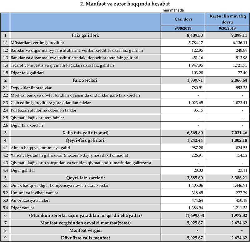 Daha bir bankın vəziyyəti məlum oldu - KİÇİLİB, ƏMƏLİYYAT MƏNFƏƏTİ AZALIB