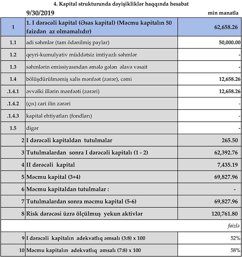 30 Sentyabr 2018-ci il tarixi ilə müqayisədə Bankda depozitlər 6 milyon 808 və ya 12,7% azalaraq 46 milyon 888 min manata düşüb. Bankda fiziki şəxslərin depozitləri 10 milyon 460 min manat azalaraq 37 milyon 974 min manata geriləyib.