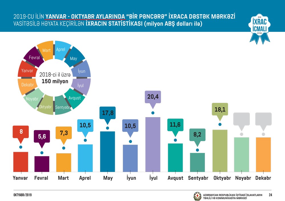 Azərbaycan Respublikası İqtisadi İslahatların Təhlili və Kommunikasiya Mərkəzinin “İxrac İcmalı”nın 2019-ci ilin oktyabr sayı təqdim olunub.
