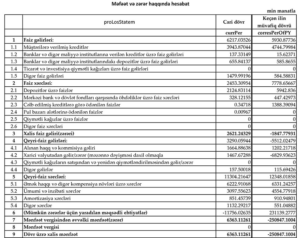 Müsbət trend Bankın faiz gəlirinin artması və qeyri-faiz gəliri əldə etməsidir. Bu səbəbdən əməliyyat zərəri 4,6 dəfə azalaraq 19 milyon 708 min manatdan 4 milyon 251 min manata düşüb.