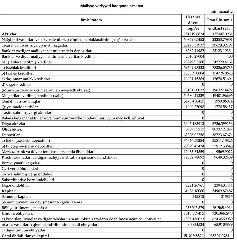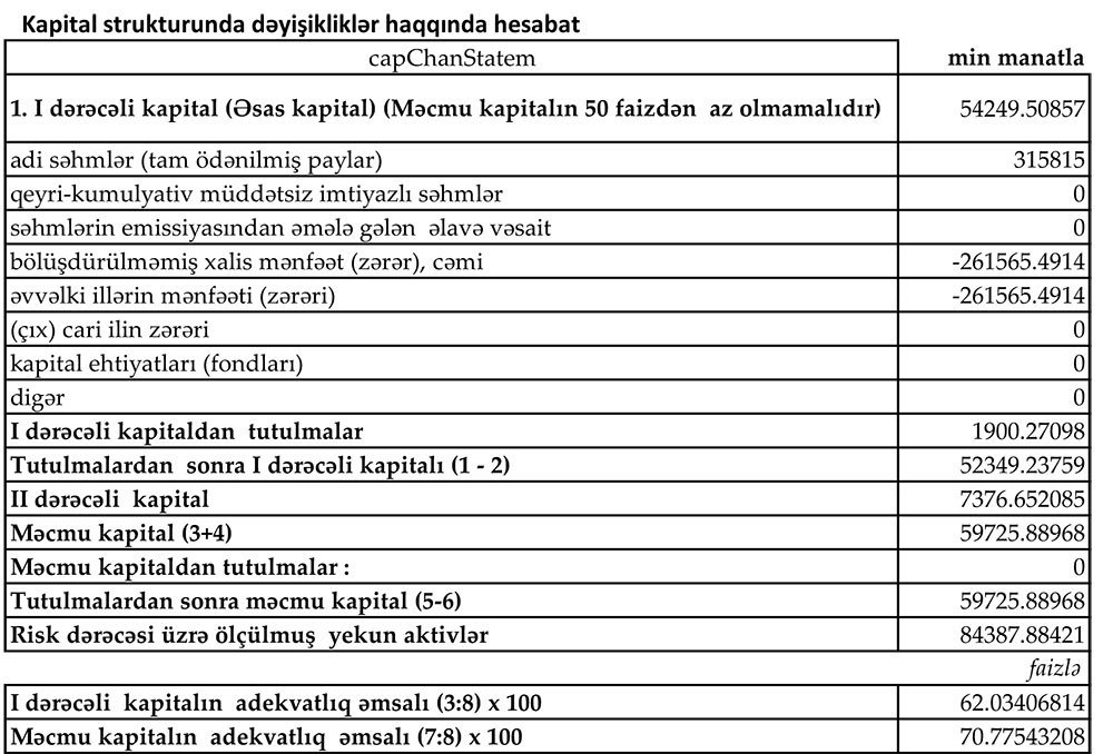 Müqayisə üçün qeyd edək ki, “Bank VTB Azərbaycan” ASC 19 milyon 708 min manat əməliyyat zərərinə və 231 milyon 139 min manat ehtiyata ayırmaya görə 2018-ci ilin 9 ayını 250 milyon 847 min manat xalis zərər ilə bağlamışdır.
