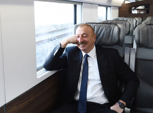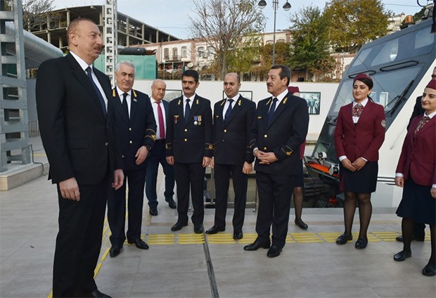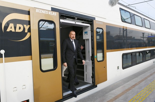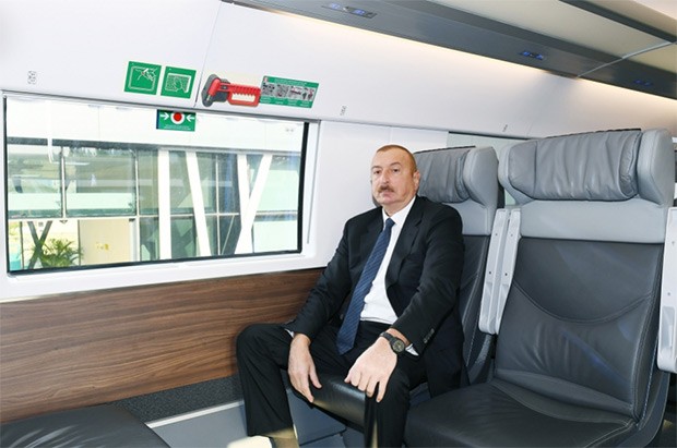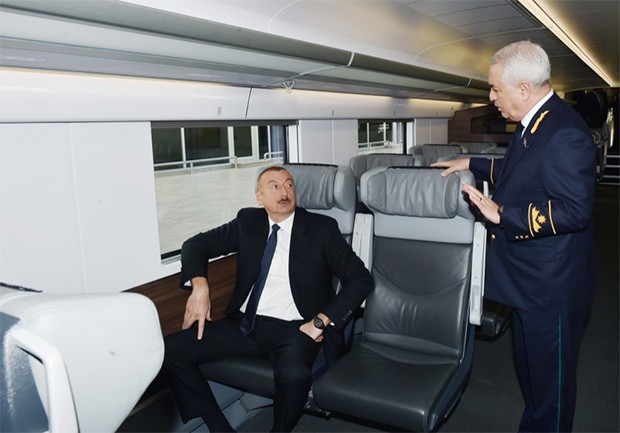 Dövlət başçısı qeyd edib ki, dəmir yollarının yenidən qurulması istiqamətində çox böyük işlər görülüb: "Mən artıq bu rəqəmləri səsləndirmişəm. Dünya miqyasında ən mötəbər beynəlxalq təşkilatlardan biri olan Davos Dünya İqtisadi Forumu Azərbaycanda dəmir yollarının keyfiyyəti ilə bağlı hesabatda göstərib ki, Azərbaycan dəmir yollarının səmərəliliyi baxımından dünyada 12-ci yerdədir, dəmir yollarının keyfiyyətinə görə 34-cü yerdədir. Bütün bunları son illər ərzində biz həll etmişik. Dəmir yollarının abadlaşdırılması, qurulması, dəmir yolu xidmətlərinin təkmilləşdirilməsi istiqamətində son illər ərzində, xüsusilə Cavid Qurbanovu mən bu vəzifəyə təyin edəndən sonra böyük irəliləyiş var. Həm Azərbaycan artıq beynəlxalq nəqliyyat mərkəzlərinin birinə çevrilib, Bakı-Tbilisi-Qars dəmir yolu istifadəyə verilib, Şimal-Cənub nəqliyyat dəhlizi işləyir, yükdaşımalar kəskin artır, eyni zamanda, ölkə daxilində infrastruktur təzələnir, İsveçrə istehsalı olan yeni müasir “Ştadler” vaqonları alınıb. Hesab edirəm ki, bu vaqonlar, dünya miqyasında ən gözəl və təhlükəsiz vaqonlardır.