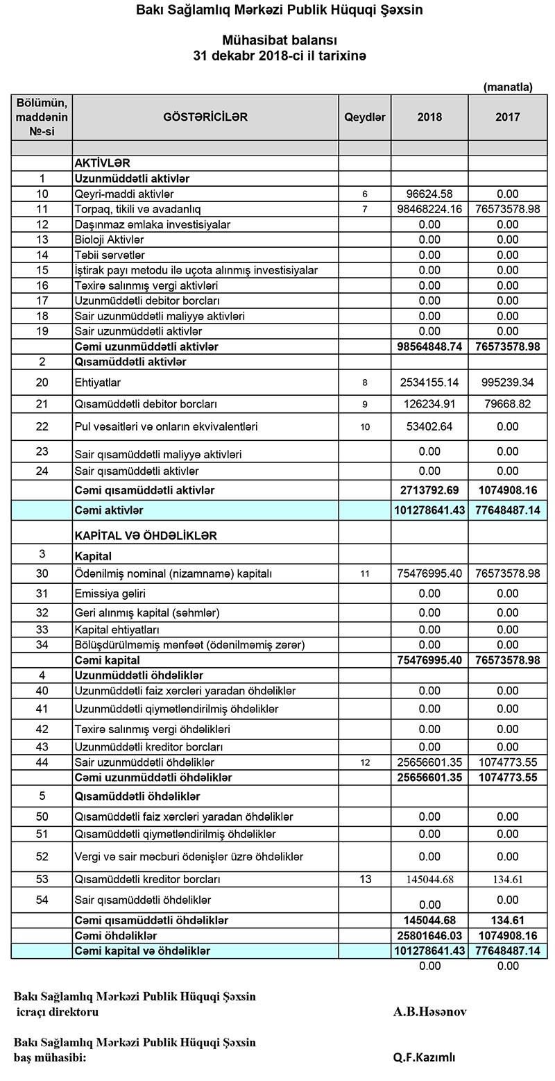 Bakı Sağlamlıq Mərkəzi Publik Hüquqi Şəxsi 2018-ci ili 14 milyon 245 min manat xalis mənfəət ilə başa vurub. Halbuki, Mərkəz 2017-ci ili 4 milyon 834 min manat zərər ilə bağlamışdı. Qeyd edək ki, Bakı Sağlamlıq Mərkəzi 2018-ci ilin əvvəlindən pablik hüquqi şəxsdir.