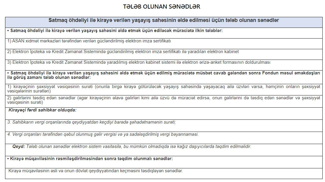 Məhkumluğu olmayan, Fonda müraciət anına vaxtı keçmiş öhdəlikləri olmayan, yaşı 60-dan yuxarı olmayan, Fondla aktiv kirayə münasibətləri davam etməyən Azərbaycan Respublikasının vətəndaşları bu hüquqdan istifadə edə bilər.