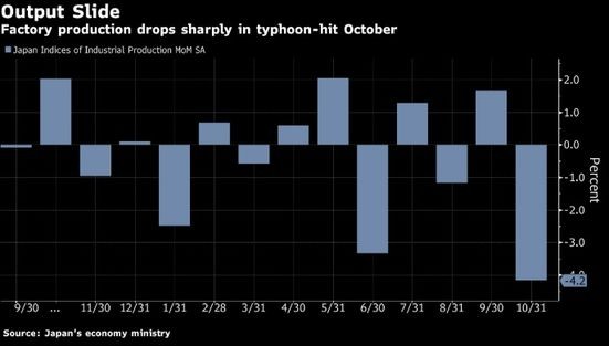 Oktyabr ayı sənaye istehsalındakı azalmaya, qlobal yavaşlama, satış vergisinin artırılması və güclü tufanın təsir etdiyi bildirilir.