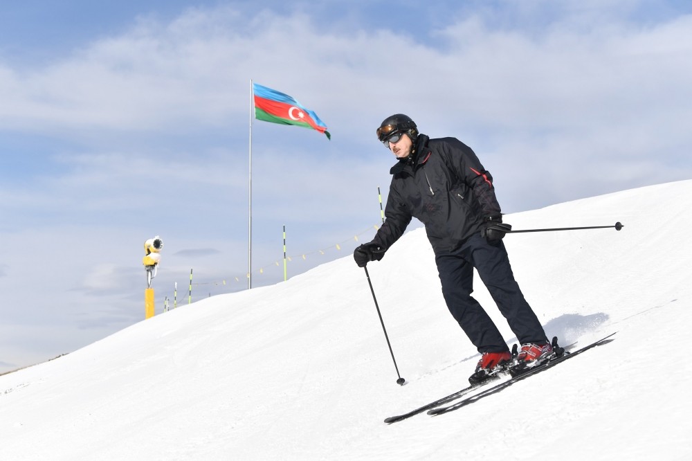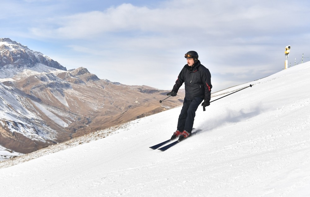 Şahdağ” Turizm Mərkəzinə gələn dövlətimizin başçısı burada xizək sürüb.