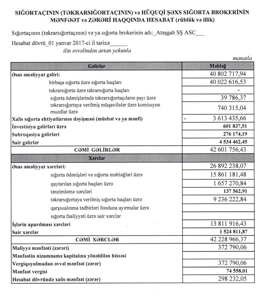 “Atəşgah Sığorta” 2016-cı ili 298 min 232 manat xalis mənfəət ilə başa vurub. Bu, 2015-ci illə müqayisədə 2,1 dəfə azdır. “Atəşgah Sığorta” 2015-ci ildə 627 min 422 manat xalis mənfəət açıqlamışdı.