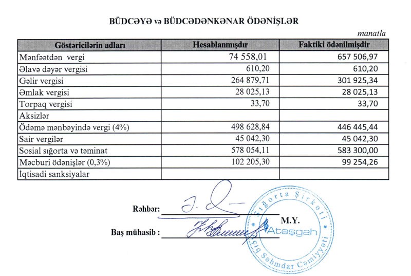 “Marja” Şirkətin maliyyə hesabatlarına istinadən xəbər verir ki, ötən il “Atəşgah Sığorta”nın cəmi gəlirləri 42 milyon 601 min manat, cəmi xərcləri isə 42 milyon 228 min manat təşkil edib. 2015-ci ildə Şirkətin cəmi gəlirləri 46 milyon 37 min manat, cəmi xərcləri isə 45 milyon 252 min manat olmuşdur.