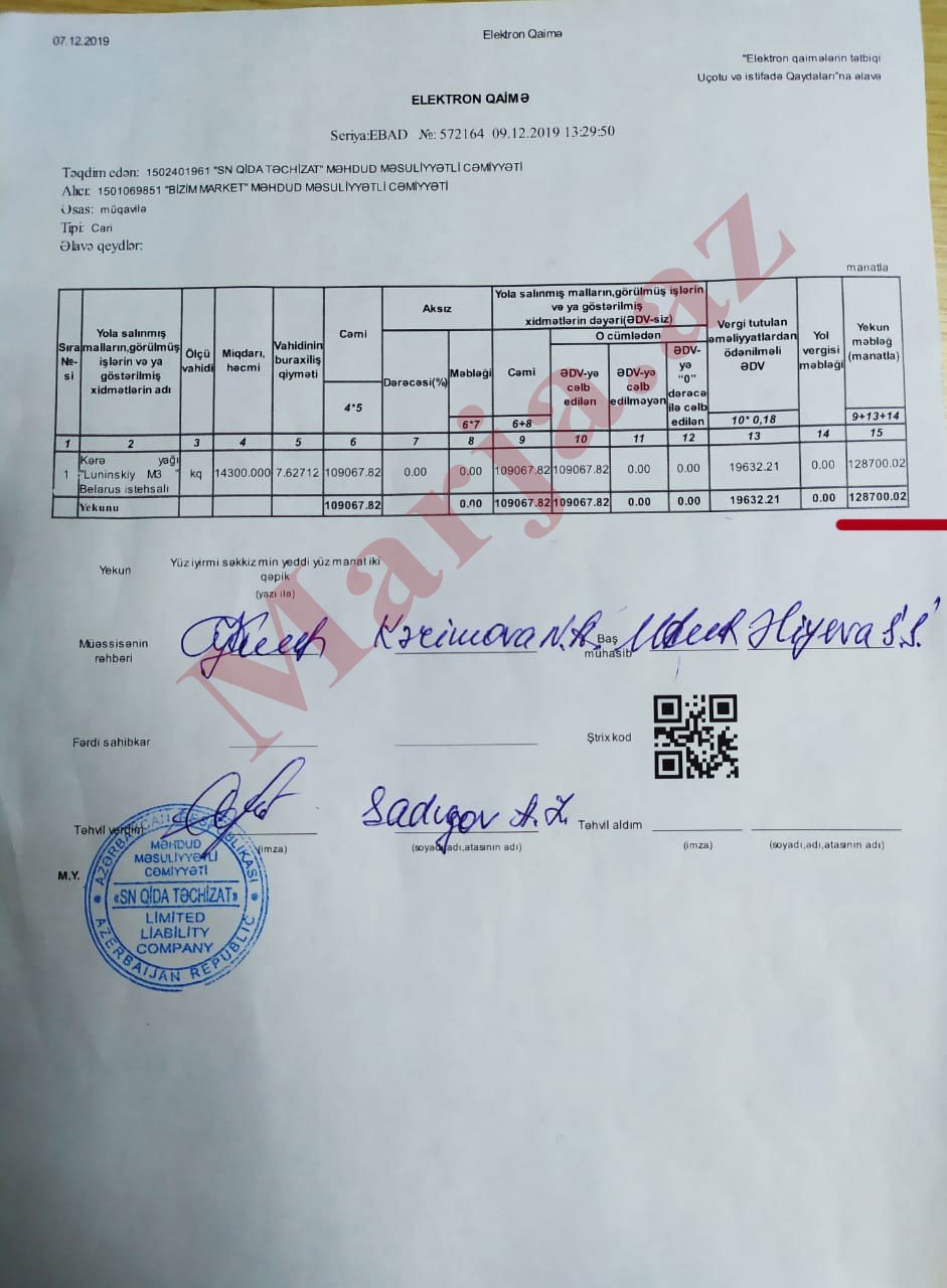 Marja.az-ın sorğusuna cavab olaraq "Bizim Market" şirkətindən bildirildi ki, "Bizim Market" AQTA tərəfindən uyğunsuz yağın aşkarlanmasında özü də zərərçəkən tərəfdir. Burada söhbət maddi, həm də mənəvi zərərdən gedir. Çünki bu məhsula görə istehsalçıya 128 min 700 manat ödəniş edilib (elktron-qaimənin fotosu aşağıda əlavə edilib).