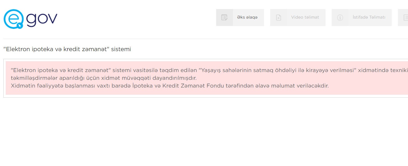 Hazırda "Elektron ipoteka və kredit zəmanət" sisteminə daxil olduqda qarşıya belə bir mesaj çıxır: