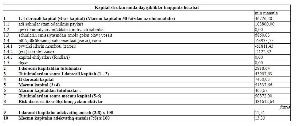31 Dekabr 2019-cu il tarixində “AGBank” 50 milyon 872 min manat məcmu kapitala malik olub.