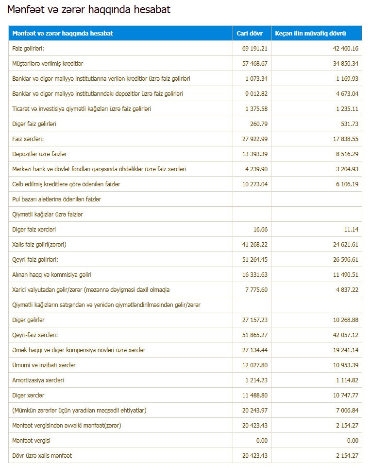 Aktivlər, cəmi gəlirlər və xalis mənfəət məbləğləri Bankın indiyədək nail olduğu ən yüksək səviyyələrdir.
