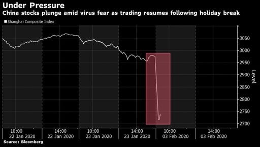 Çin şirkətlərinin səhmlərinin qiymətləri, virus epidemiyasının pisləşdiyi bir mühitdə, Yeni İl tətilindən sonra ilk əməliyyat günündə kəskin düşüb.