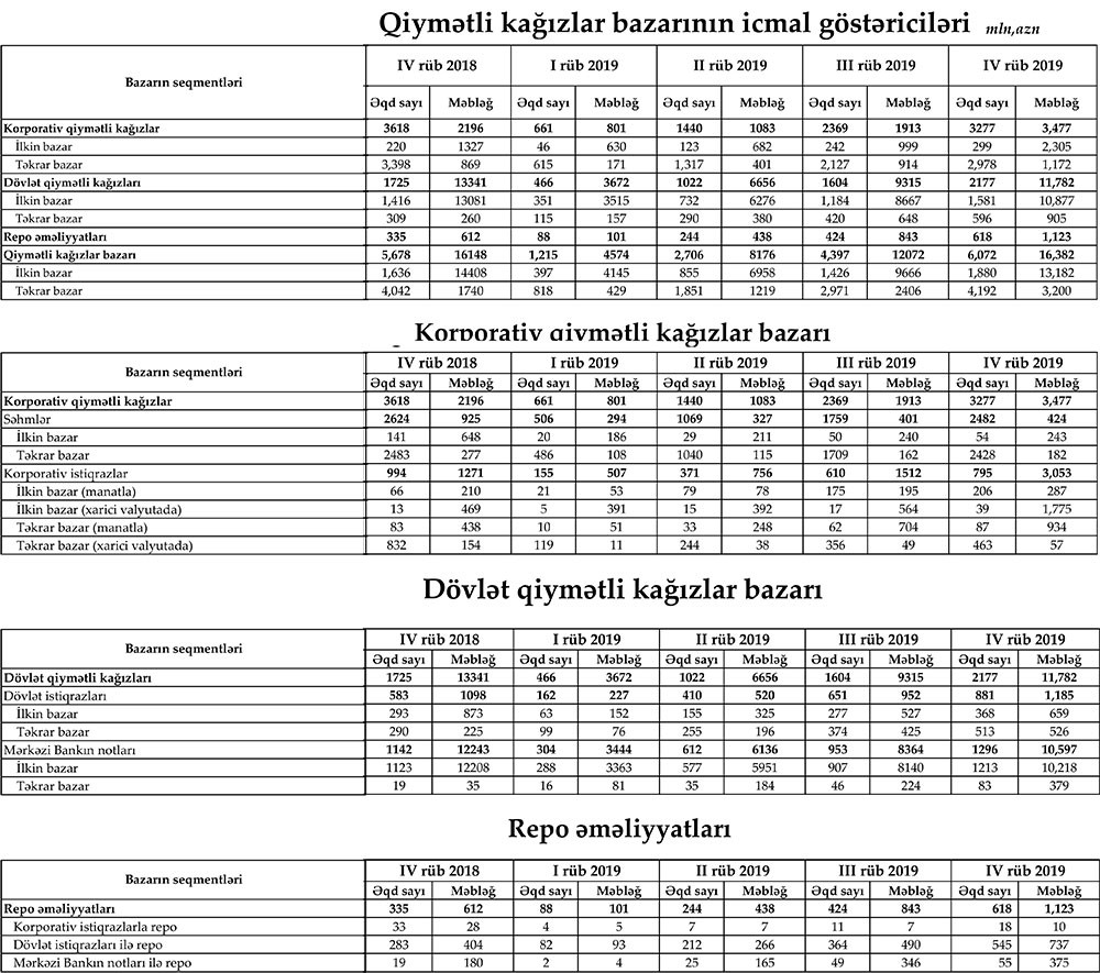 2019-cu ildə Azərbaycanın qiymətli kağızlar bazarında 16 milyard 382 milyon manatlıq əməliyyat aparılıb.