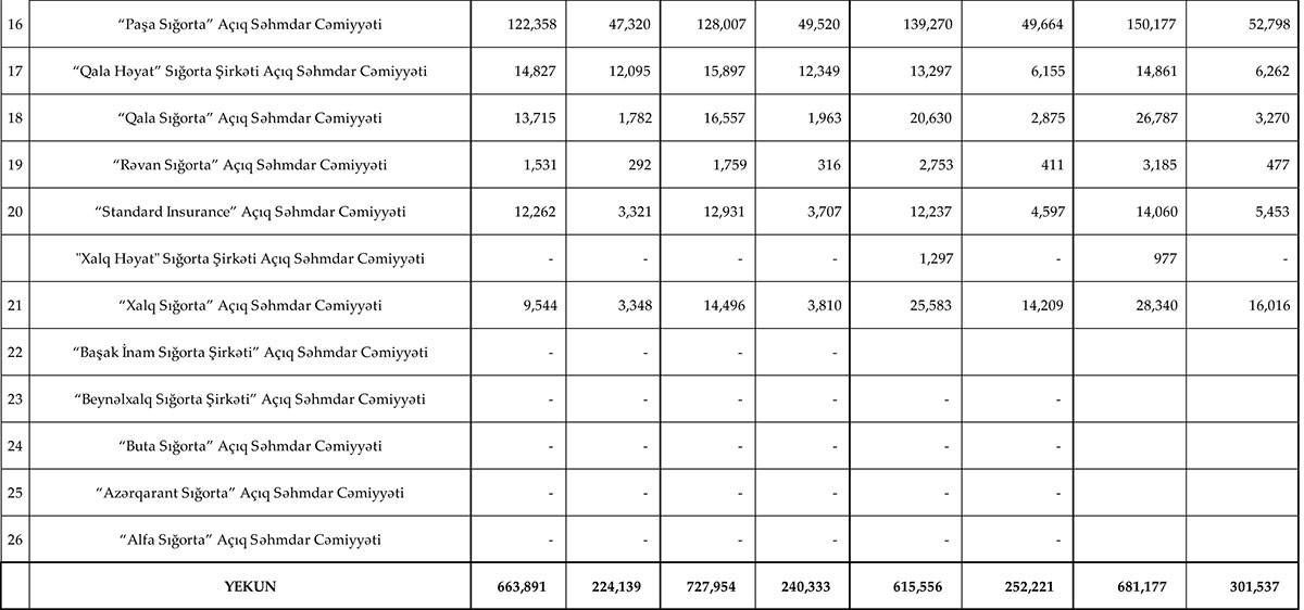 Sığorta şirkətləri üzrə haqlar və ödənişlər - SİYAHI