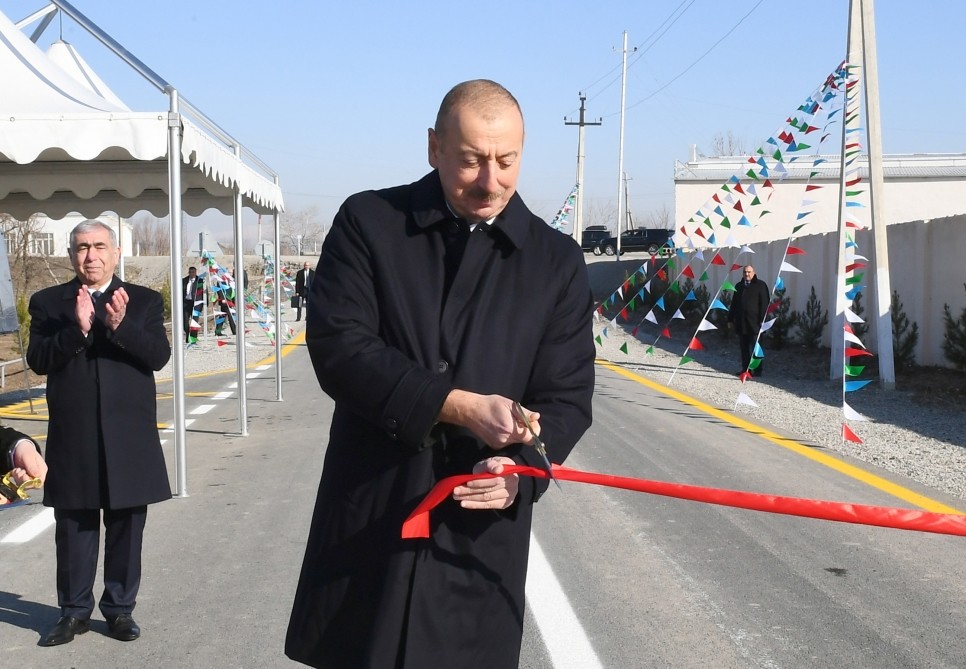 Prezident İlham Əliyev: Bu rayonda, ümumiyyətlə, yol infrastrukturu çox bərbad vəziyyətdədir. Çünki indi Azərbaycanda belə torpaq yollara nadir hallarda rast gəlinir.