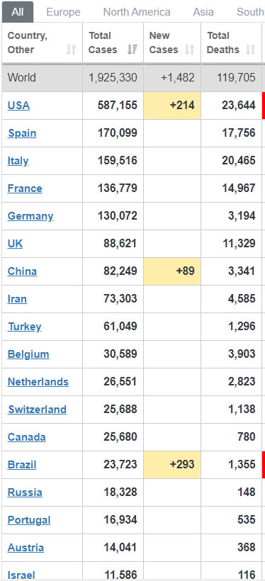 Dünyada koronavirusdan ölənlərin sayı 119 min səviyyəsini də aşaraq 119 min 705-ya çatıb.