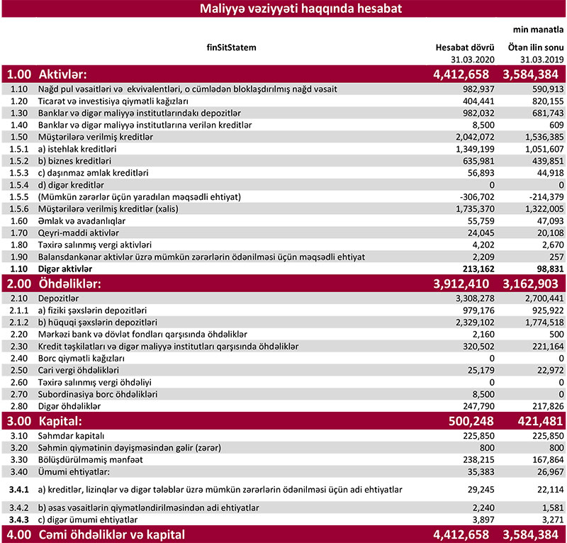 Xatırladaq ki, Kapital Bank ASC 2019-cu ili 134 milyon 708 min manat xalis mənfəət ilə başa vurmuşdu, bu, Bankın idiyədək əldə etdiyi ən yüksək illik xalis mənfəət idi.