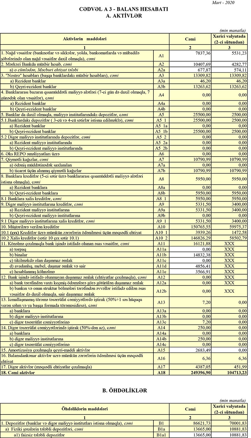 Xatırladaq ki, 2019-cu ilin yanvar-mart dövründə “Ziraat Bank Azərbaycan”ın cəmi gəlirləri 5 milyon 138 min manat, cəmi xərcləri isə 3 milyon 228 min manat təşkil etmiş, nəticədə Bankın 1 milyon 910 min manat əməliyyat mənfəəti yaranmışdı. Bank əməliyyat mənfəətinin 951 min manatını aktivlər üzrə mümkün zərərlərin ödənilməsi üçün xüsusi ehtiyatın yaradılmasına ayırdığından mənfəəti 959 min manata düşmüşdü.