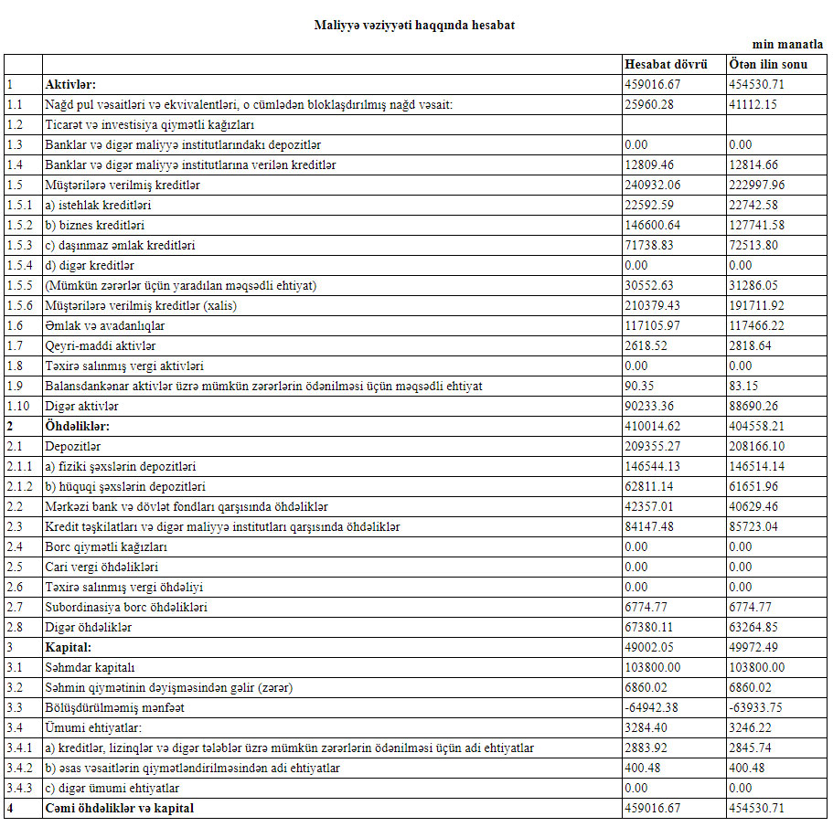 “AGBank”da depozitlər 208 milyon 166 min manatdan 209 milyon 355 min manata yüksəlib.
