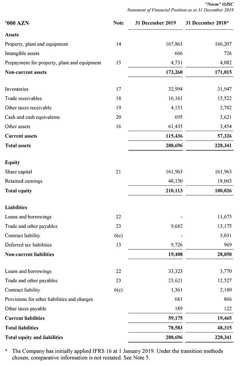 Qeyd edəkl ki, "Norm" MMC-nin maliyyə hesabatlarına “KPMG Audit Azerbaijan” şirkəti rəy verib.