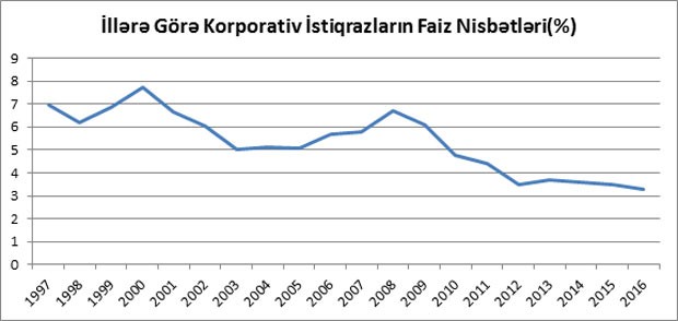 Qeyd edək ki, dünya maliyyə bazarlarının inkişaf etməsi, ölkələrin və şirkətlərin iqtisadi vəziyyətinin yaxşılaşması nəticəsində son 20 ildə korporativ istiqrazların faiz həddlərində azalma müşahidə edilib. 1997-ci ildə dünyada hər istiqrazdan orta hesabla 6.97% mənfəət götürmək mümkün idisə, 2016-cı ildə bu göstərici 3.27% təşkil edilib.