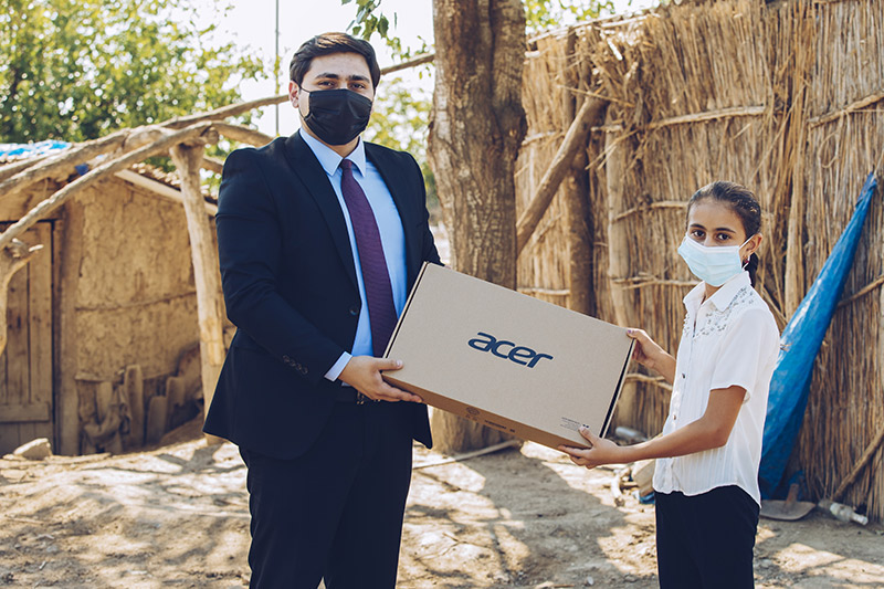 (®️) “ASAN xidmət” və “Rabitəbank” ASC-nin birgə təşəbbüsü ilə reallaşdırılan “Təhsiliniz Gələcəyimizdir" layihəsi davam edir. Sosial təşəbbüs çərçivəsində uzaqdan təhsilə uşaqlar uzaq qalmasın deyə bu dəfə "Acer" şirkətinin dəstəyi ilə Ağcabədi rayonunun Taxtakörpü qəsəbəsinin Mişni obasında həssas əhali qrupuna aid edilən ailələrin üzvü olan və tədris müddətində fərqlənən şagirdlərə “Acer” markalı notbuklar, həmçinin 1 illik pulsuz internet paketləri təqdim olunub.