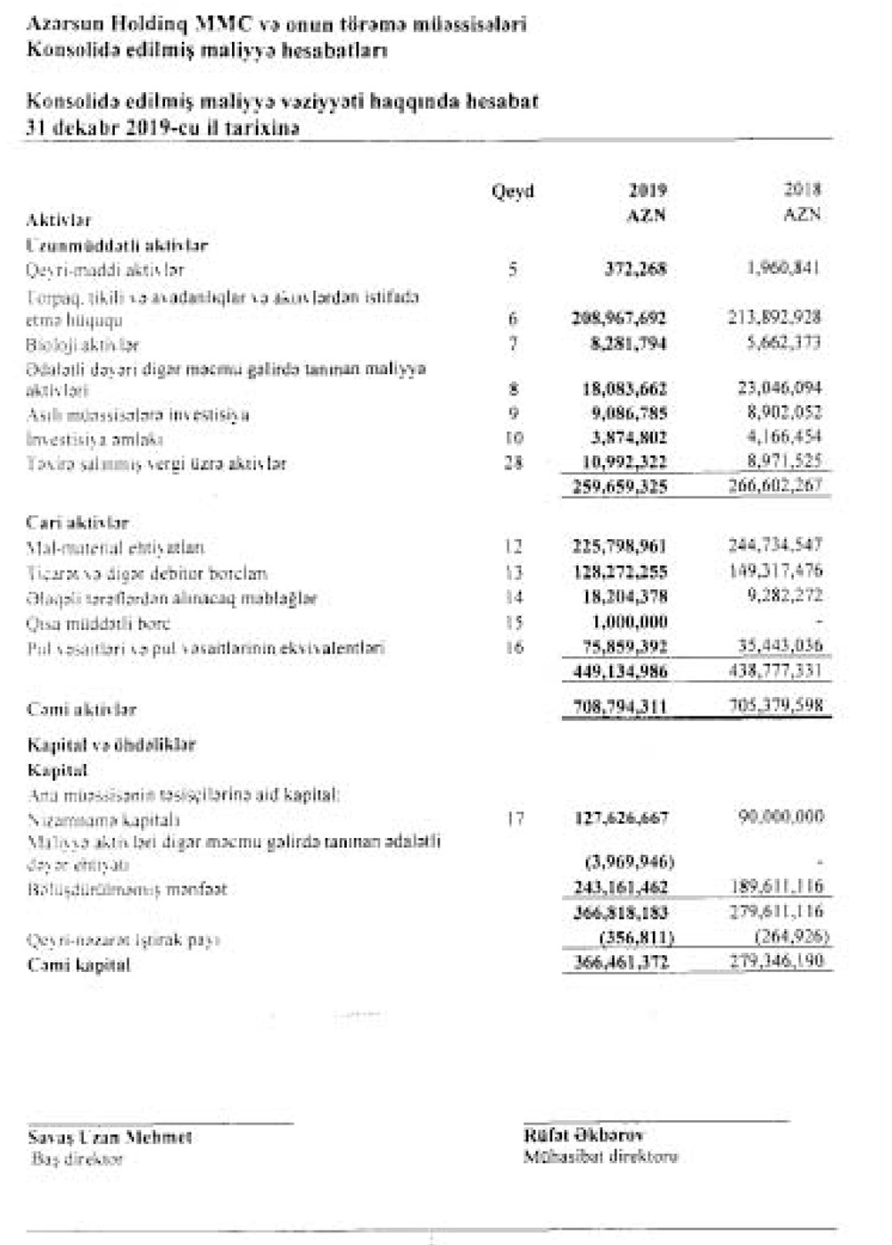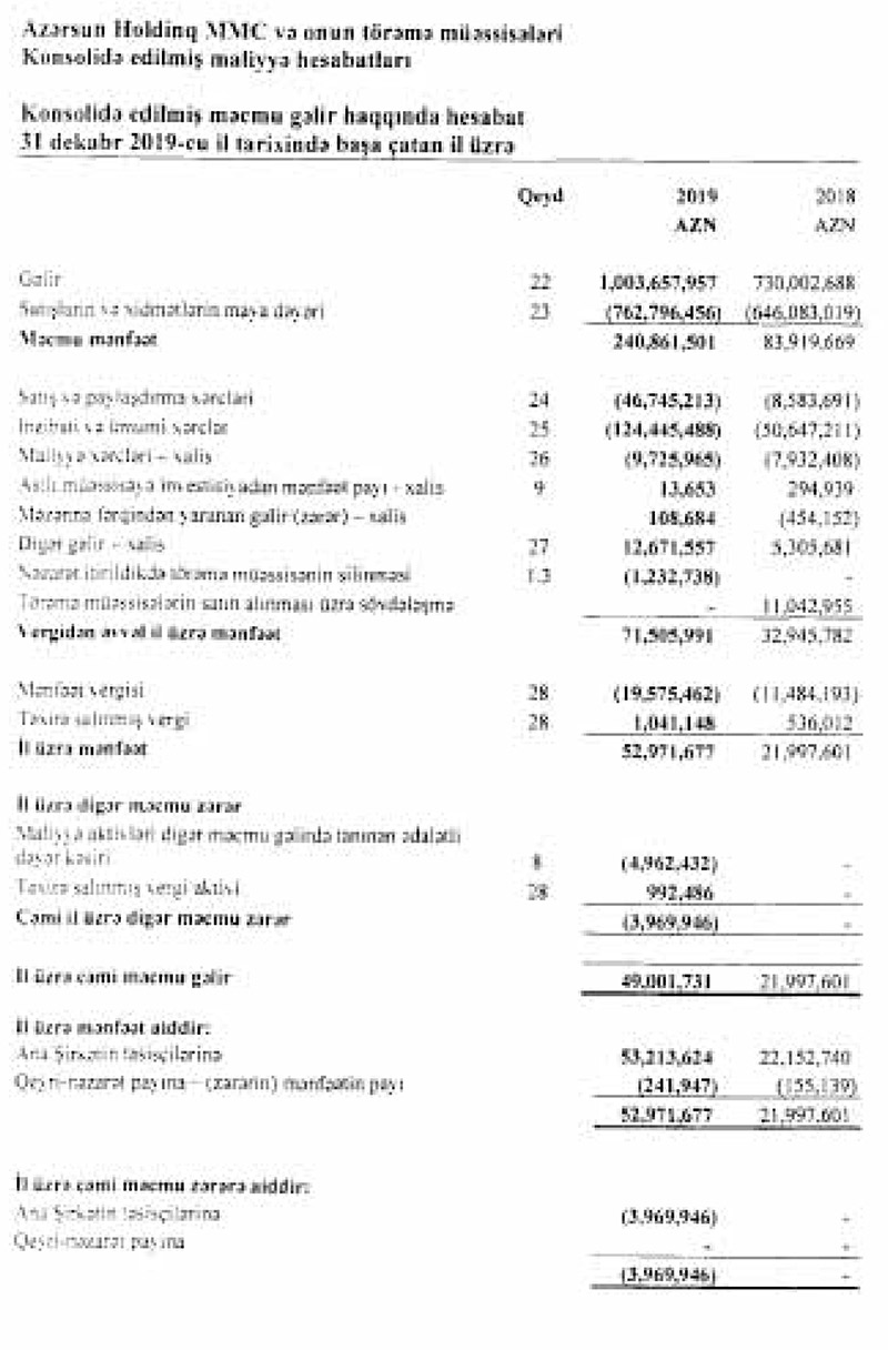 Qida məhsullarının istehsalçısı “Azərsun Holdinq” MMC 2019-cu ili 52 milyon 971 min amant xalis mənfəət ilə başa vurub.