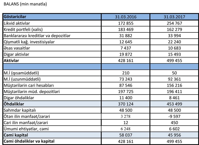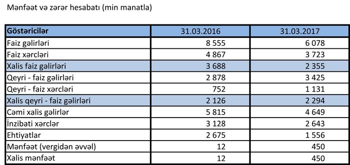 “Rabitəbank” ASC 2017-ci ilin 1-ci rübünü 450 min manat xalis mənfəət ilə başa vurub. Halbuki Bank, ötən ilin anoloji dövründə cəmi 12 min manat xalis mənfəət açıqlamışdı.