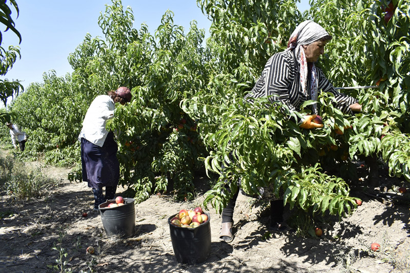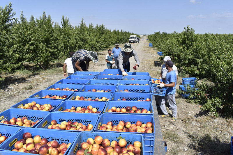 Ötən il ilk barını verən ağaclarda bu il bol məhsul yetişib. Artıq alça, ərik, yastı şaftalı və armudun yaylıq sortunun yığımı başa çatıb. Hazırda şaftalının nektarin sortunun yığımı həyata keçirilir. Hər hektarın məhsuldarlığı orta hesabla 15-20 tondur. Yığılan məhsul çeşidlənir, qablaşdırılır, soyuducu anbarda çəyirdəyi müəyyən olunmuş temperaturda soyudulur, sonra satışa çıxarılır. Təsərrüfatda istehsal edilən məhsul yerli bazarlarla yanaşı, Rusiya bazarlarına da göndərilir. Avqust ayının 20-dən sonra armudun digər sortunun və badamın yığımına başlanılacaq.