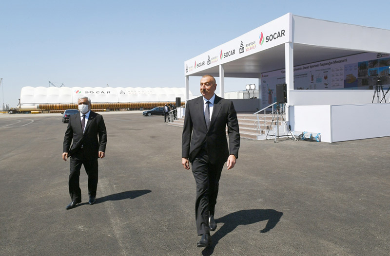 Azərbaycan Respublikasının Prezidenti İlham Əliyev avqustun 10-da Heydər Əliyev adına Bakı dərin özüllər zavodunda “Qarabağ” yatağının dayaq blokunun dənizə yola salınması mərasimində iştirak edib.
