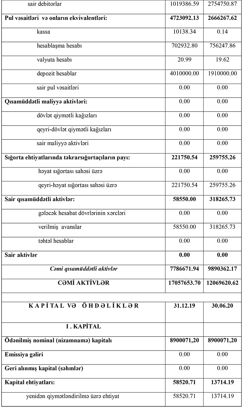 Bu il iyulun 1-nə "Rəvan Sığorta"nın aktivləri 12 milyon 7 min manat olub ki, bu da illik müqayisədə 24,7% azdır. Hesabat dövründə şirkətin öhdəlikləri 38,7% artaraq 4 milyon 47 min manata çatıb, balans kapitalı isə 38,85% azalaraq 8 milyon 22 min manata düşüb.