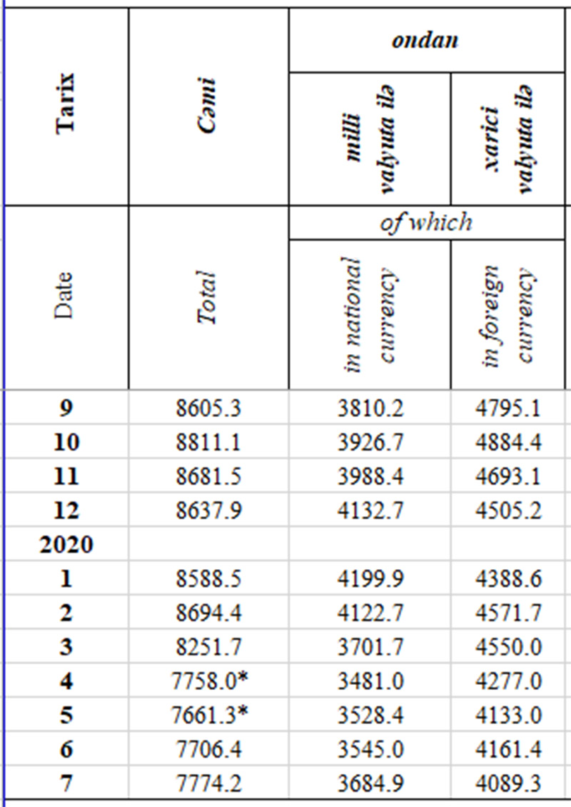 Marja Mərkəzi Banka istinadən xəbər verir ki, İyul ayının sonunda fiziki şəxslərin banklardakı cəmi əmanətləri 7 milyard 774 milyon 200 min manat təşkil edib. Əmanətlərin 3 milyard 984 milyon 900 min manatı və ya 47,4%-i milli valyutada, 4 milyard 89 milyon 300 min manatı və ya 52,6%-i xarici valyutalarda (əsasən ABŞ dollarında) yerləşdirilib. İyun ayının sonunda nisbətlər müvafiq olaraq 46% və 54% idi.
