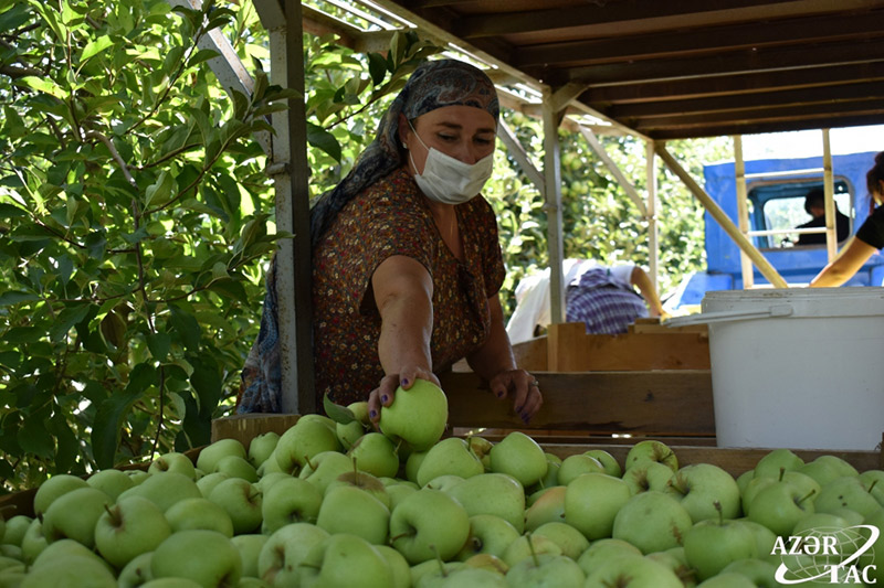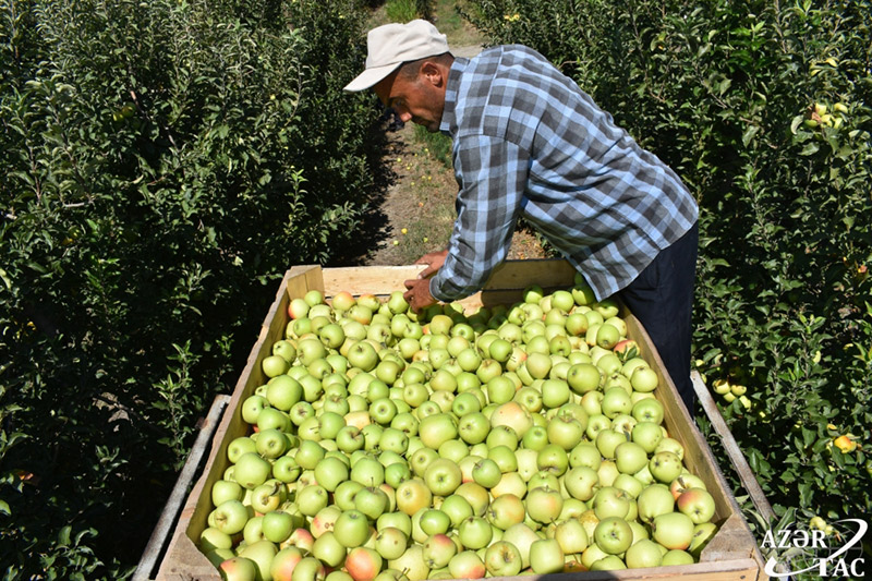 Bağların ilk məhsulu avqust ayında toplanılıb. Tezyetişən “Royal qala” sortlardan bol məhsul əldə olunub. Hazırda isə “Golden”, “Jonagold”, “Granny Smith” sortlarının becərildiyi bağların məhsulu toplanılır.