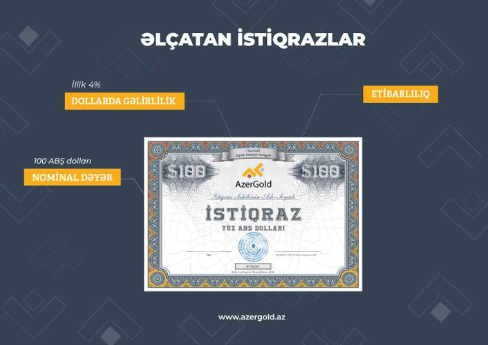 "Maliyyə bazarına təklif edilən istiqrazlar daim inkişaf edən qiymətli metalların hasilatı sahəsinin və qeyri-neft sənayesinin liderlərindən biri olan “AzerGold”un maliyyə mənbələrinin şaxələndirilməsi və yeni layihələrin icrasına yönəldilməsi ilə eyni zamanda ölkənin qiymətli kağızlar bazarının inkişafına töhfə vermək, eləcə də vətəndaşlara mənfəətli və etibarlı investisiya imkanları yaratmağa xidmət edəcək. Bu da öz növbəsində vətəndaşların milli iqtisadiyyat və dağ-mədən sənayesinin inkişafında pay sahibi olmağa əlverişli fürsət yaradacaq", -məlumatda deyilir.