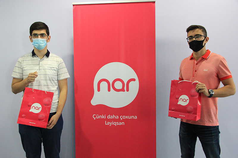 (®️) “Nar” hər il olduğu kimi bu il də ali məktəblərə daxil olmaq üçün qəbul imtahanları zamanı ən yüksək nəticə göstərərək 700 bal toplamış abituriyentləri mükafatlandırdı. Builki qəbul imtahanında 700 bal toplamış Əziz Kərimli və Hüseyn Abdullayevə mobil operator tərəfindən müasir smartfonlar, “Nar” nömrəsi və zənglər üçün ödənişsiz balans təqdim edilib.