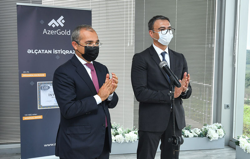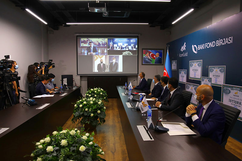 Mərasimə, həmçinin, Azərbaycan Respublikasının İqtisadiyyat naziri Mikayıl Cabbarov və emitent “AzerGold” QSC-nin İdarə Heyətinin sədri Zakir İbrahimov Cəmiyyətin Daşkəsən rayonunda yerləşən “Çovdar” mədənindən birbaşa canlı bağlantı vasitəsilə qatılıblar.